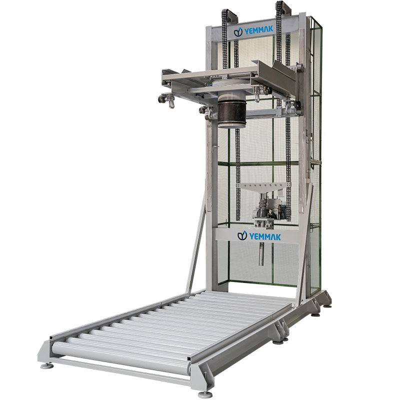 It can work with 500 kg to 2000 kg sacks and has 10t/h to 20t/h filling capacity. The prepared sack reaches the filling point. When the filling muzzle goes down, opening of the sack is then constrained. Trap door underneath the screw or vibro feeder is opened and thus the filling process starts. When the sack reaches a certain defined weight, feeder stops and the trap door closes. After the bag weighing is completed, the hooks carrying the bag open automatically and release the bag.