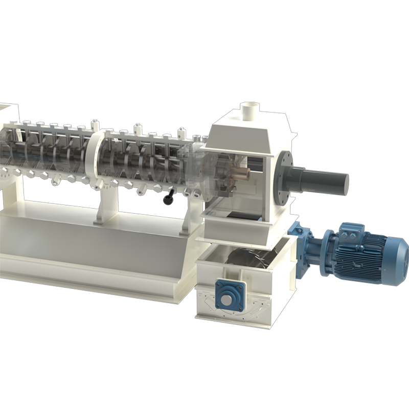 To account for wear and tear, the expander screws are removable and replaceable over the shaft shaft. For optimal results, the expander should be used in conjunction with a lump breaker at the exit, which facilitates the distribution of the molded product and the consistent feeding of the pellet mill.