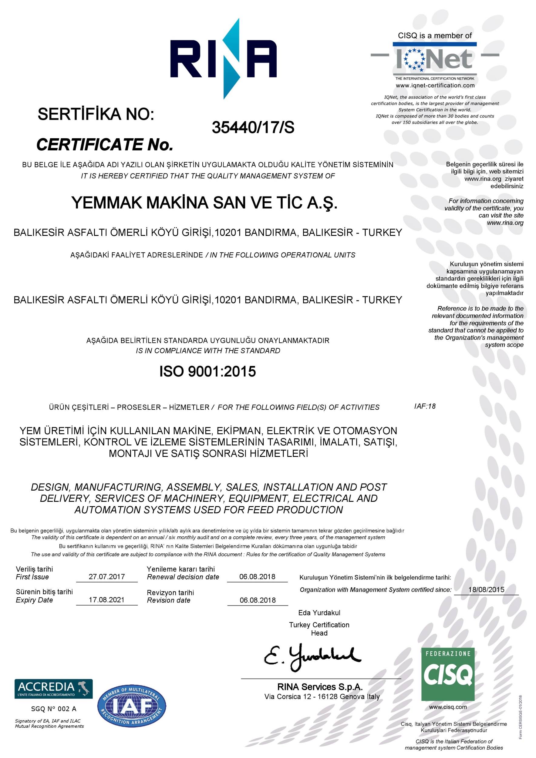 • To ensure that ISO 9001: 2015 Quality Management System is understood, implemented and maintained by all units of our company, to continuously improve the Quality Management System by preventing errors from occurring and ensuring that they are not repeated,