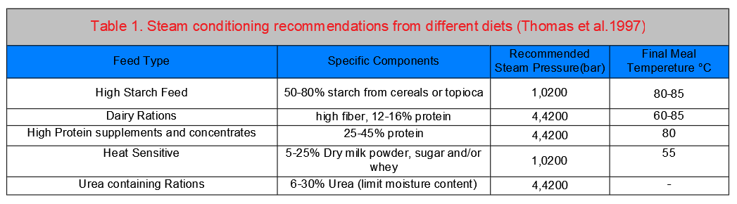 Table 1. Steam conditioning recommendations from different diets (Thomas et al.1997)