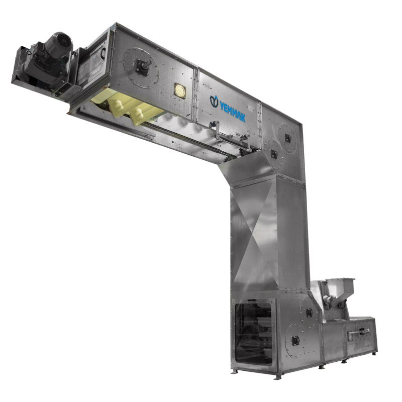 Plastic or metal supported buckets are used in BESZ Series Elevators depending on the operating conditions and the product. Chain links with roller are selected according to the capacity and length of the BESZ Series Elevator and suitable strength is provided.