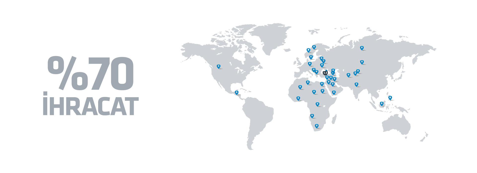 "Avrupa’nın en büyük üreticilerinden biri olarak 55 yıllık proses mühendisliği tecrübemizle 4 kıtaya üretimimizin %70’ini ihraç ediyoruz."